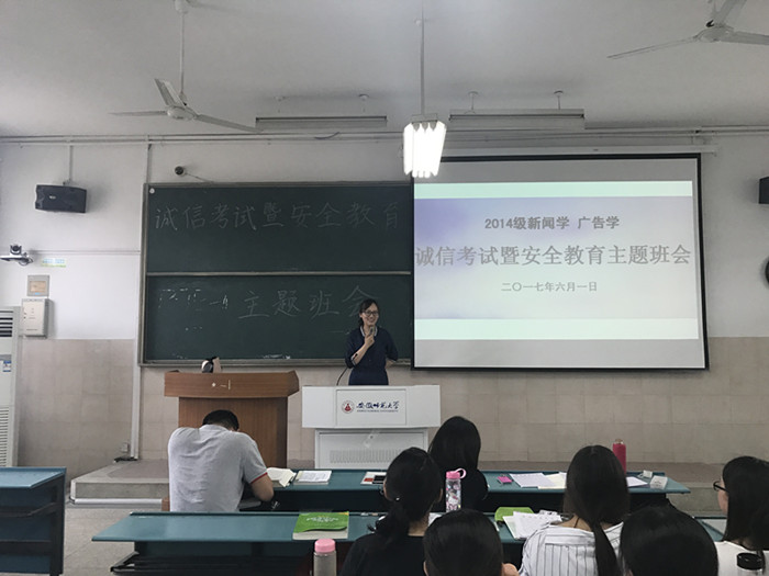 6月1日,2014级新闻学、广告学专业在教学楼2040503召开学期末诚信教育与安全主题班会。本次会议由辅导员孙月婷老师主持,专业全体同学参与。