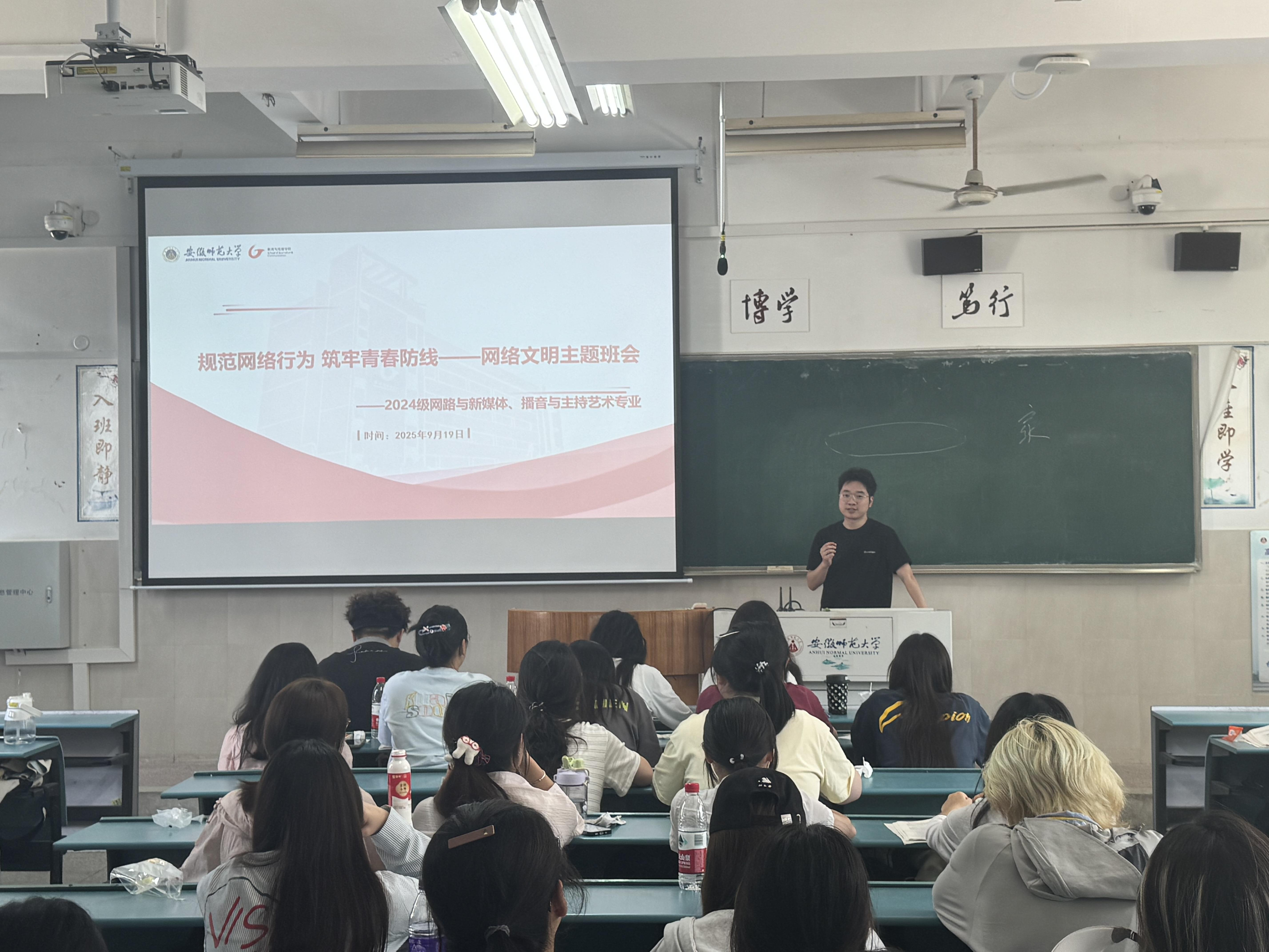 为增强员工网络素养与安全意识,共同营造清朗网络空间,9月19日上午,24级网络与新媒体、播音与主持艺术专业在2030402教室召开“规范网络行为,筑牢青春防线”网络文明主题班会,班会由辅导员王旭主持。