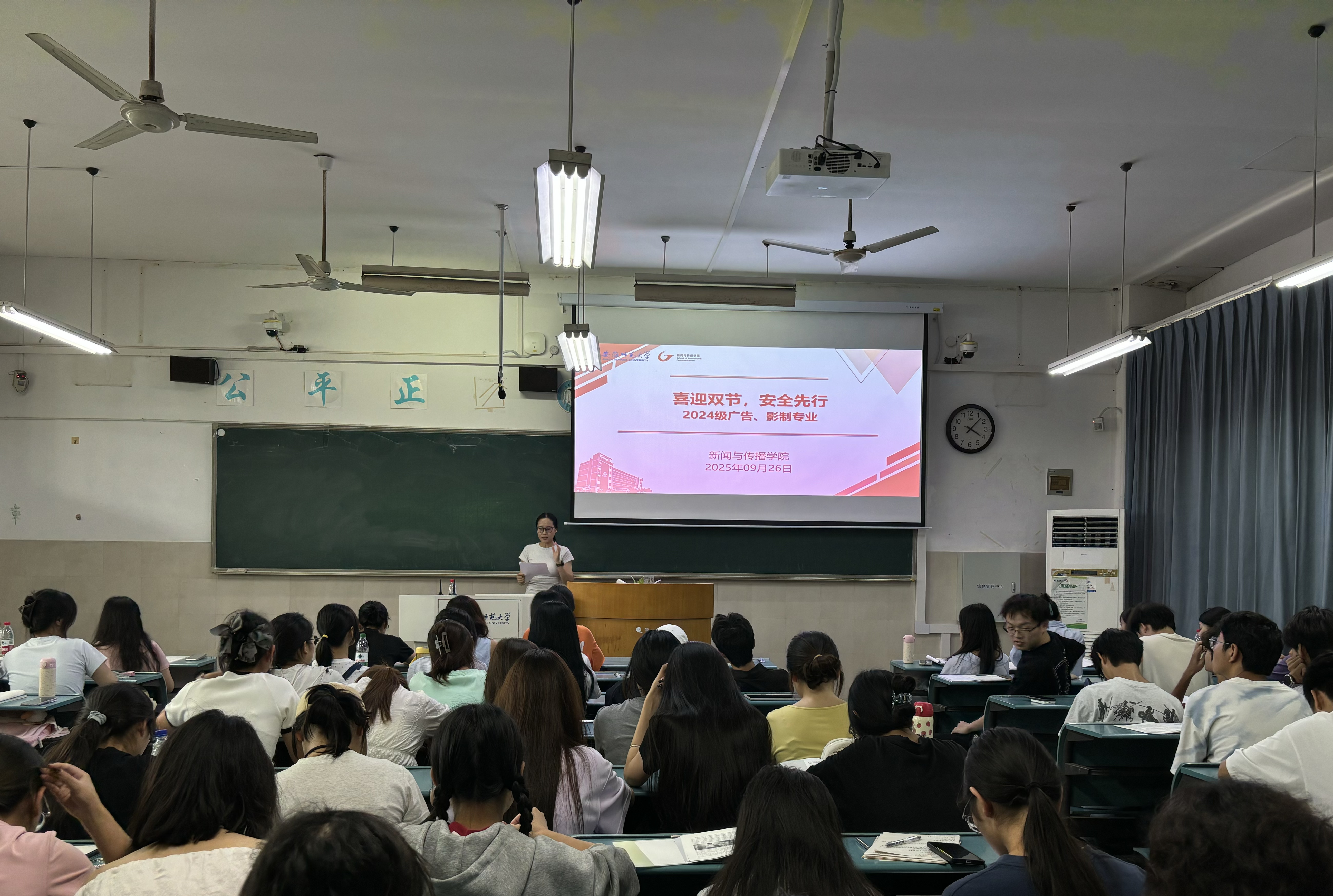 为切实做好国庆、中秋双节期间员工安全教育与管理工作,增强员工安全防范意识,保障假期校园秩序稳定,9月26日,2024级广告、影制专业于行知楼2020504教室召开国庆中秋假期安全教育主题班会。班会由辅导员乌思琦主持,24级影制、广告学全体员工参加。