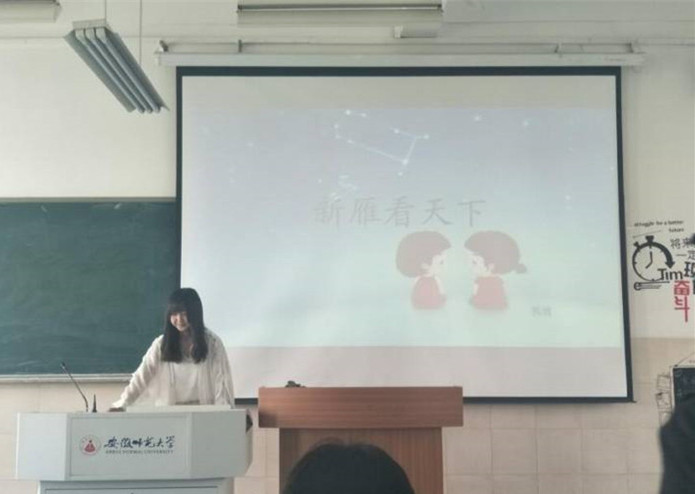 除此之外,新闻1班还与新闻2班联合举办了“新雁看天下”汇报会。汇报会于周五定期举行,每次都会有一位同学带领大家回顾这一周的热点事件或时政要闻,并引导大家围绕这些新闻事件进行讨论。这一活动不仅仅促进了同学之间的交流,也加深了同学们对新闻的思考,同时活动中的激烈争论也大大激发了大家的创新思维。