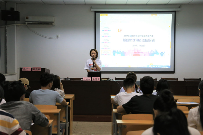 2015级新闻专业的宣智丽作为院员工会新媒体部的副部长,结合院官微和官博的具体运营状况,提供丰富且有价值的经验供各团队参考、借鉴。她还提出,今年公司官微将会帮助符合条件的实践团队推送优质微博,这项工作也会贯穿整个暑期社会实践的过程。而优秀微博需满足以下四个条件:一、主题带有正能量,弘扬主旋律;二、具有团队特色;三、排版简单大方;四、带上微博话题,注意微博@规则、顺序。2015级广告学专业的喻馨君则将微博注意要点划分为四部分,即从“内容的策划”、“整体的排版”、“排版的要点”和“成功的例子”这几个模块来进行细致阐述,使得在场的新传学子收获颇丰。