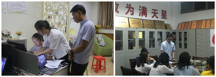 同时,为了保证团队实践顺利开展,指导老师孙月婷、张虹带领部分实践队员于6月15日前往岳西县与当地对接,解决住宿、采访、交通等问题。出征前一天,全队“驻扎”公司,分组进行微课试讲,同时加入了直播元素,队员们共同参与其中,完成最后的准备工作。