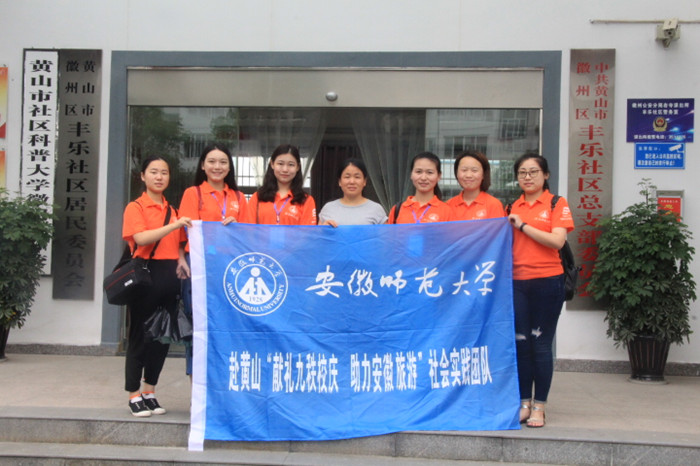 员工采访组的5人则对徽州区青少年活动中心主任张海云员工进行了人物专访。张老师欣然接过团队准备的鲜花,还声情并茂地为我们演唱了师大校歌,展现了极高的音乐素养。这位员工肩负流动青少年宫、义务声乐合唱团和青少年心理辅导站的多重职责,正是她性格中坚持乐观的因素,支撑着各部分工作充实定期地运行着,辐射全区青少年课外兴趣教育的普及。就在近年,张老师因敬业奉献被公选为“徽州好人”。她是青年公益的杰出代表,也是师大学子的志愿服务榜样。