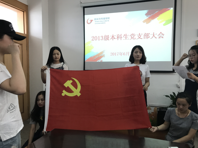 现场,党员同志们全体起立,手心握拳,再一次面对党旗,重温入党誓词。口中掷地有声的80个字,党员同志们不仅牢记于心,更是在毕业期间身体力行,力争做一名“两学一做”的忠实实践者。