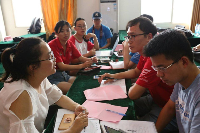 支教组的队员一上午都在与十几岁的孩子们及为他们报名的家长打交道,青少年宫三楼挤满了欣喜于培训班的开设的人们。笑声与问答声的交融、老员工与初中生的相处、家长与小老师们关于课程的讨论……各样的场景,在镜头下反映出最先期待的成效的初步实现。招生名额满员后,截止报名,支教组组员分类整理学员信息并整合。