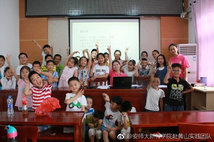 甫一开始,团队播放了传媒素养普及培训班的宣传幻灯片。幻灯片以轻快的节奏和活泼的语调讲述了历年来安师大TapTap点点暑期社会实践团队来到黄山徽州这片文化厚土开展老员工暑期三下乡的团队概况,并着重介绍了团队根据公司自身特色开展传媒素养普及培训班,每年通过实践团队成员于第一课堂上所学的专业知识作为教育课程来服务实践地区的青少年儿童,激发他们对传媒专业的兴趣,鼓励他们在培训班上大胆发声,展现自我。一张张记录了队员和孩童们纯真欢乐的笑脸是每年盛夏关于实践二字最难忘的回忆。
