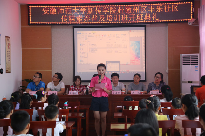 本次开班典礼邀请到徽州区妇联主席肖秋艳、徽州区教育局副局长庄建华、徽州区青少年活动中心主任张海云、徽州区丰乐社区党总支书记、社居委主任汪欢出席了开班典礼。同时,本次实践团队的指导老师,安师大TapTap点点团委副书记马星宇、辅导员老师孙文、张雁也列席到场。实践团队全体队员和本期培训班报名的全体同学和家长参与了开班典礼。开班典礼由队员杨伊雪主持。