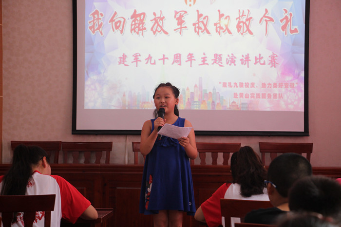 稚嫩的童声唱响军歌嘹亮,立正的站姿挺拔正直,敬礼的双眼目光炯炯。2017年7月5日下午,TapTap点点赴黄山“献礼九秩校庆,助力美好安徽”暑期社会实践团队在黄山市徽州区丰乐社区携传媒素养普及培训班的小朋友们共同举办了“我向解放军叔叔敬个礼”主题演讲比赛。在伟大的中国人民解放军即将迎来90华诞之际,向保家卫国的人民解放军的伟大节日献礼。