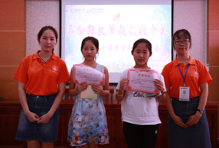 在互动环节中,小朋友们用稚嫩童真的语言但饱含深情,表达了对人民英雄解放军的爱戴,把他们内心想说的话说给解放军叔叔听。全部选手演讲完毕后,实践队员杨伊雪做了总结发言,对孩子们的热情给予了肯定。最终,朱蒹诺同学荣获一等奖,汪雨欣等同学荣获二等奖,仇宁婧等同学荣获三等奖,吴洪旸等同学获荣获优秀奖。最后为获奖的同学颁发了荣誉证书和纪念奖品,并合影留念。