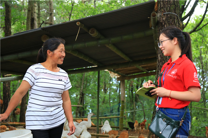 直到当地政府的扶贫政策全面推开,全国范围内打响了脱贫攻坚战,汪秀的生活才发生了翻天覆地的变化。办养殖场的想法十年前就在她的心里生根,但碍于资金不足,一直未能实现。2013年,在政府的带动下,她终于迈出第一步,在自家后山圈起了一块空地养起鸡、鹅。政府每年2000块钱的产业奖补,也为她减轻了一些负担。缺乏专业的养殖技能,汪秀就积极参加村“两委”为普及国家扶贫政策、宣传农林业知识而举办扶贫夜校;不会使用互联网,她就跑去问儿子公司的老师,去问农村淘宝的店主,“我有好多东西不会,不过可以不耻下问。不,应该是不耻上问”。