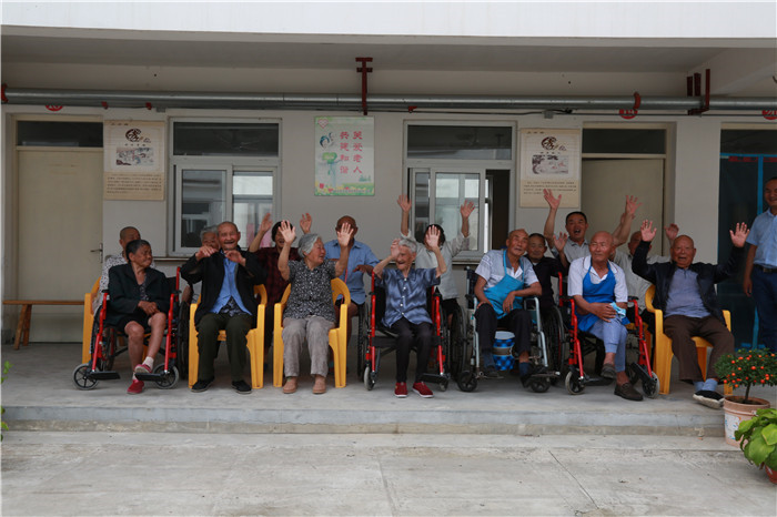 到了离别之前的下午,天气阴沉,院子里有丝丝微风,很是惬意,爷爷奶奶们手拿蒲扇和大碗茶坐在院子的走廊里。听到下午有表演,都早早地从午睡后在院子里等待。考虑到部分老人的听力不够灵敏,团队成员提前准备好了音响和话筒,随着主持人的一声高呼,老人们鼓掌欢迎,此次的演出也就算开始了。