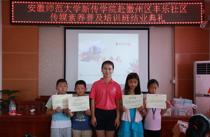 下午五点,颁发完结业证书后,持续三个小时的活动顺利结束,也代表赴黄山“献礼九秩校庆 助力美好安徽”暑期社会实践团队的传媒素养培训班圆满结束。(文/汪悦 图/王霞 张天虹)