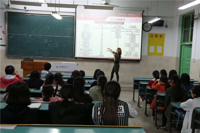 会议期间,张虹还多次引例个人亲身经历,畅谈自己回访贫困生家庭的感受和2012级贫困生同学带给自己的感动故事。她说:“有些同学放弃了申请资格;有些同学被默默地关心;有些同学在暗下决心,努力回报;人可以不要有付出感,但不能失感恩心;我们不做道德绑架,也不容忍忘恩负义。在座的你们都是班级中的精英、人才,相信你们的明天会愈加美好!”