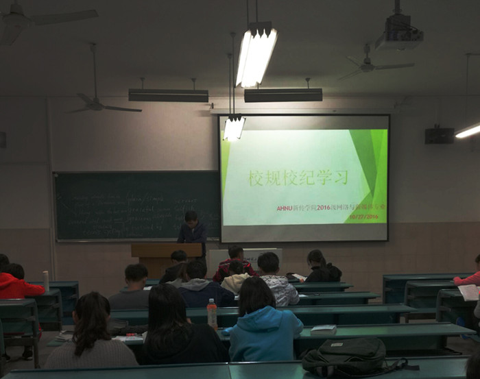 为了进一步提高新生对于师大精神的深刻了解,加强对于校史校情的学习,更好地走入师大、了解师大、融入师大。10月26日晚,16级新闻、网新专业的全体同学在辅导员张雁的带领下召开了“校规校纪在心中”主题班会。