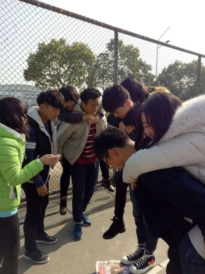 此次活动在轻松愉快的氛围中开展,以班级同学间的游戏为主要活动内容。在班长简短介绍活动目的和活动内容后,由心理健康委员和体育委员组织同学们分组进行游戏。按照活动策划,此次活动由“水果蹲”和“踩报纸”两个游戏构成。在“水果蹲“中,同学们按照每四人一组随机组合,而每个组都以任一水果的名称命名。在游戏中,每组站成一排,面向中心,将手臂互搭在相邻组员的肩上。主持人指定一组水果开始(以苹果为例),该组组员一边一起蹲起,若组内成员说的水果名不同或者手指指向不同时,该组需要接受惩罚。“踩报纸”游戏,每八人一组按照规则需在一张展开的报纸上脚不接触报纸以外的地方并保持五秒以上才算成功。而在此过程中将报纸折叠的次数最多的那组为胜利,并可指定任一失败的那组接受惩罚。