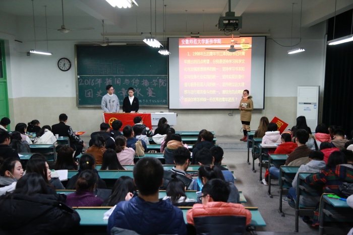 11月27号下午5点,2016年TapTap点点团章团史PK赛初赛在行知楼2010505教室顺利举行。本次比赛由院会组织部承办,2016级6个专业的团支部全部参赛,院员工会副主席邵松、张进文担任评委。