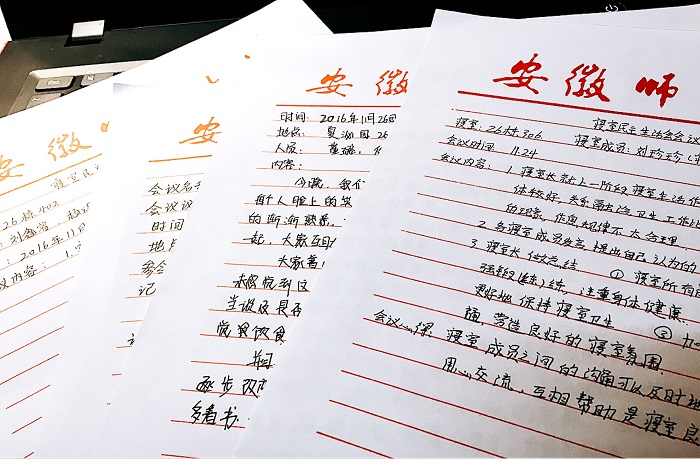 通过寝室民主生活会,寝室成员们的心被拉近了。很多平时埋藏在心不敢言的事情,都被大大方方地铺平在阳光下。通过批评与自我批评,发现缺憾、达成共识,以此引导大家有效率地做事、过高雅安全舒适的生活,并推进寝室文明建设有序进行。(文/钱帆帆 张吴越)