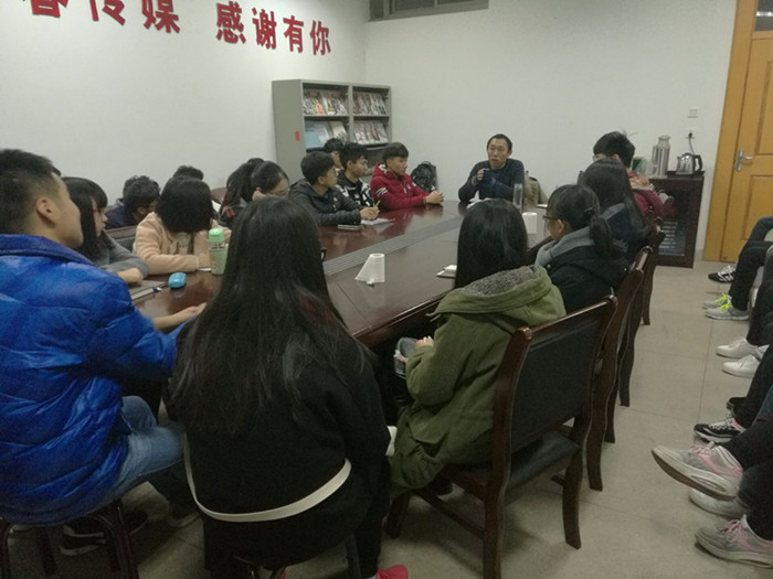 在一天忙碌而充实的学习过后,同学们怀着激动而忐忑的心情走进TapTap点点楼502会议室,因为今晚他们将会就自己所关心的事情直接向网新专业的负责人翟老师提出自己的疑惑。当晚,翟主任如约准时到达会议室,爽朗的性格,使同学们的拘束感在无形中减轻了许多,也拉近了同学们与老师的距离。谈话会伊始,翟主任首先向同学们介绍了网新专业的当前建设所取得的显著成果,比如利用部校共建的契机建立专业实验室,以及他对网新专业的未来建设的设计。通过介绍,同学们一方面对网新专业的巨大潜力有了更进一步的认识,另一方面也为自己身处这个专业而感到深深的荣誉感。