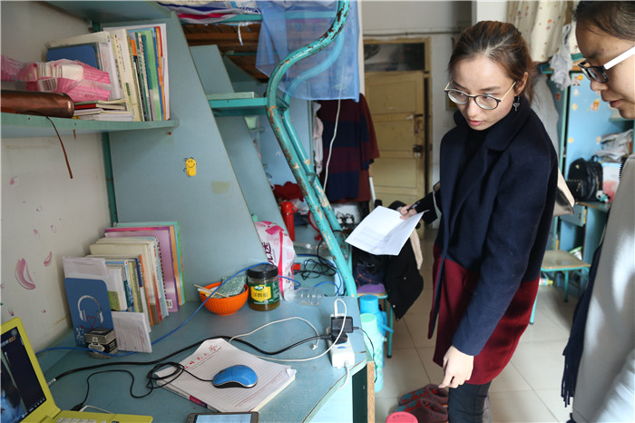 12月6日中午,2015级新闻、网络与新媒体、摄影专业的辅导员张虹带领院员工会成员对三个专业的员工寝室进行了一次安全卫生突击检查。