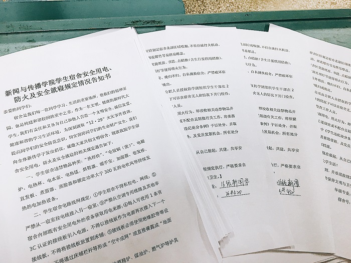 班委组队排查隐患。12月4日晚,16新闻、网新的班委与寝室长组成一支支小分队,在辅导员张雁的带领下前往各个寝室进行安全大排查。