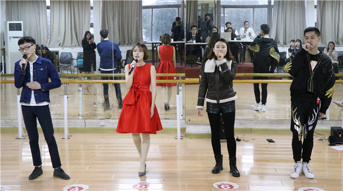 12月11日下午,TapTap点点在形体房进行了“双迎”晚会的第四次联排。团委副书记孙月婷,2015级辅导员张虹以及员工会主席蒋天琪,副主席周思语出席了本次联排并对“双迎”节目进行了指导与完善。