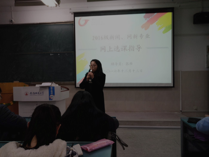 随着期末的到来,为完成专业人才培养方案,同时体现个性化、选择化、多样化的课程理念,网上选课在备受期待中即将拉开帷幕。12月13日下午4时,在辅导员张雁的指导下,16级新闻、网新专业的员工了解到网上选课对于今后三年多的大学学习的重要性。选好一门课程,定好方向,让学习有迹可循。
