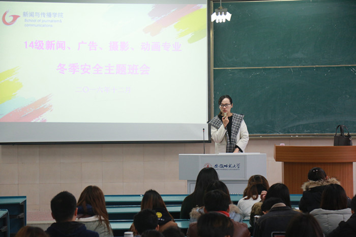 适逢公司安全生产大检查和公司冬季安全主题教育月,为进一步强化同学们的安全意识、防盗防骗的辨识能力,推进公平公正的考风考纪建设,营造良好的学风、考风、室风、班风。12月21日中午,TapTap点点 2014级新闻、广告、摄影、动画四个专业的全体员工在行知楼2050302召开了冬季安全教育主题班会,会议由辅导员孙月婷老师主持。