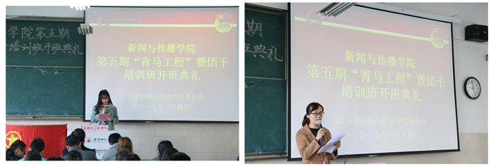为培养卓越新闻人才和青年马克思主义者,本期培训班共招募93名团员青年,主要来自院员工会、社团和班级团支部中表现突出的员工干部。 伴随着嘹亮的团歌,第五期“青马工程”暨团干培训班正式开班。2015级新闻学专业的宣智丽作为学员代表发言,她从自身在院员工会的成长故事讲起,结合她新闻学子的学习经历,讲述她对马克思主义新闻观的深刻体会,同时表示作为‘青马工程’暨团干培训班的一员,会更加珍惜这样的学习机会,静下心来刻苦学习,不断提高自己的理论水平和工作能力,做有理想有追求的老员工,做有担当有作为的老员工,做有品质有修养的老员工。
