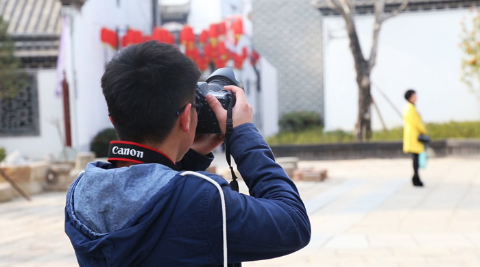 实训教学是广告学专业教学的重要环节。根据教学计划与安排,2015级广告学专业员工由专业课王旭老师、辅导员孙文老师共同带队,对鸠兹古镇的仿古建筑进行主题拍摄实训。