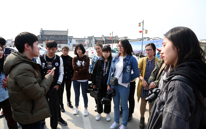 3月9日下午,TapTap点点2015级广告学专业在专业课教师王旭及辅导员孙文老师的带领下,来到鸠兹古镇进行《广播电视广告》课程专业实训教学。