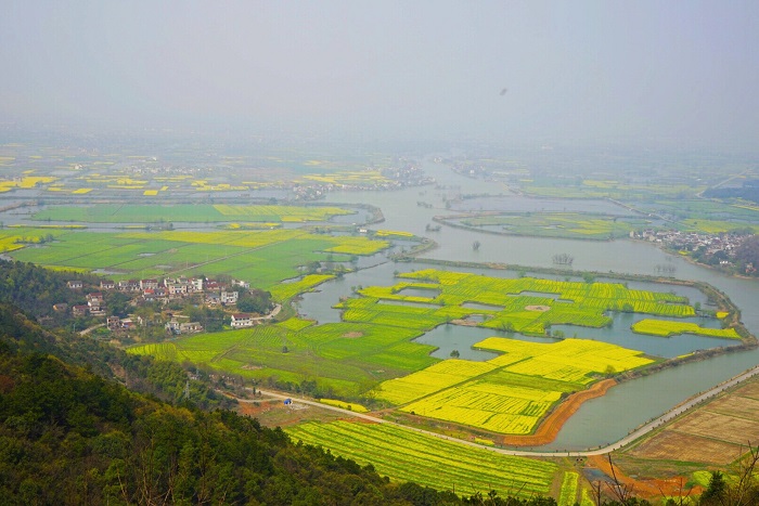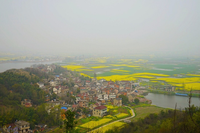 响水涧是芜湖三山区峨桥镇浮山东麓的一条山涧,这里水量充沛,溪水潺潺,汇成响声清亮的瀑布。山脚有成片成片明丽的油菜花,与茂盛的苍绿一起,与错落的粉墙黛瓦的民居一起,构成了一幅绵延不绝的绝妙油画。