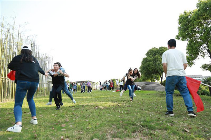 “第一时间脱下袜子的同学,一定是最爱这个集体的。”乍一听这句话,有点丈二和尚摸不着头脑,其实这是在进行游戏“前方有难,后方支援”。经历了一系列的团结协作,也需要有点竞争性的游戏来调动调动气氛,某种意义上来说,竞争也是让我们变得更好的一种催化剂。两个队伍,分别派一名战士去前方,一名配送员,剩下的同学就是我们强大的后方支援队了。“需要外套一件”,“需要袜子五只”,“需要鞋带五根”……只看见两个队的队员着急地准备着物资,然后递给派送员,看着他们跟一阵风似的就窜到终点。“需要一个女生”,这突然的一句话使得两个队伍都懵了一下,随即只看见前面的“总钻风”队以迅雷不及掩耳之势向前窜过去,大家都感慨“宋楚楚背着个人怎么跑的这么快”,到了终点才发现,这跑着的竟然是王健,他们的队伍临时偷换了配送员,显然,这小小的把戏被识破,最终我们的“江志航去哪了”队获胜。