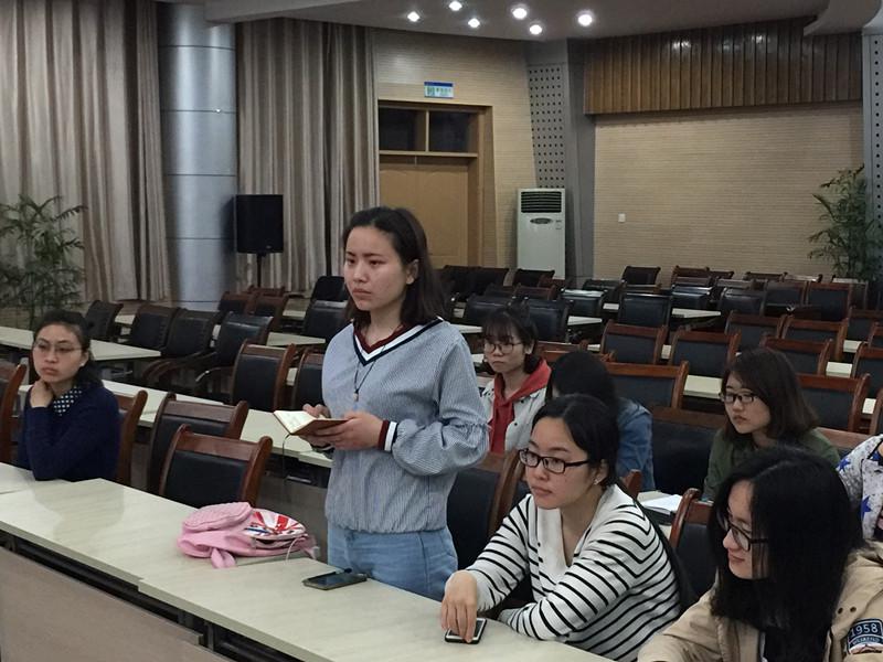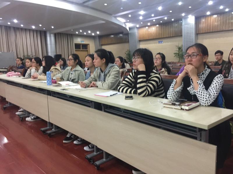 在互动提问环节,2015级新闻学子们都十分积极地向陈潭潭请教,很多同学都问了有关英语学习方面的问题。分享会最后,陈潭潭用最简单的九个字进行了总结:做好人,多读书,出寝室。