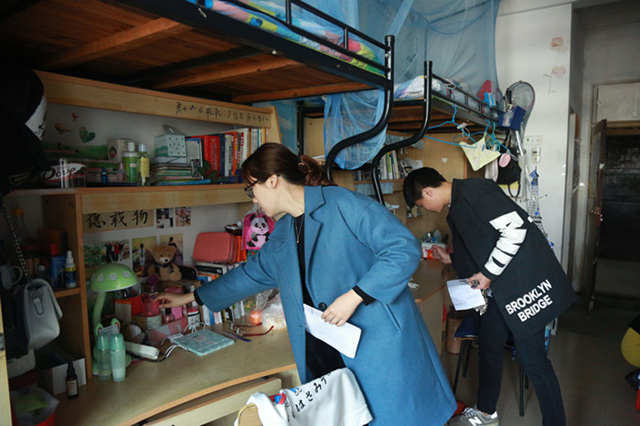 孙老师对违禁电器仔细清查,对质量不合格的接线板等物品进行劝阻更换。她告诫同学们:严禁在寝室使用违禁电器,吸烟、晚归不归等行为也应当被禁止,加强自律与他律,严格遵守公寓管理制度,从身边小事维护自身安全。