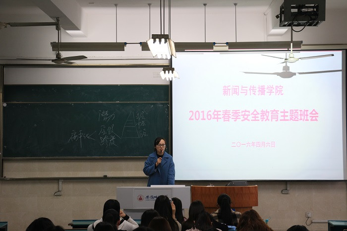4月6日,新闻、动画、广告、摄影四个专业分别在2010505教室召开春季安全教育主题班会。春季是安全问题的多发期,安全隐患的根本在于同学的安全意识欠缺。孙月婷在班会一开始以当天安徽师大共青团微信公众号推送的文章《严爱之—火灾猛于虎,安全重于天》为导入,她指出幸福师大需要每一位师大人自觉参与建设,全校师生齐抓安全教育,以对违规行为和员工的“严”体现对全体员工的“爱”。