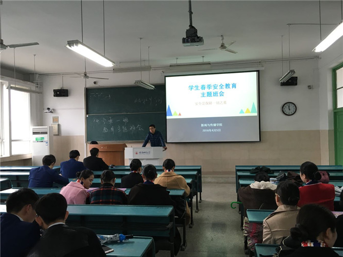 为增强同学们的安全防范意识,提高同学们的安全防范能力,全面普及校园安全常识,2014级播音、空乘专业分别在4月5日-8日相继分班级开展了春季安全教育主题系列教育活动,辅导员马星宇和金通公司生活导员宋珂及进入本年度公司专职辅导员招聘考察人选的徐明露分别在有关班级或主持会议,或参加安全检查。