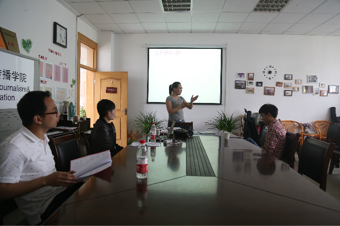 招聘会伊始,晴朵就当代老员工的工作目的与在座同学们进行了交流,从工作的选择、互联网的发展、平台的创建方面介绍了当前的网络发展现状,提出未来互联网的发展趋势。接着,她借PPT向同学们展示了欢聚网红商公司的概况。之后,晴朵针对应聘者关心的招聘岗位、晋升培训等话题做了详细说明,一一答复了同学们提出的有关工资待遇、工作内容、员工培训、派遣出差等内容的疑问,并就求职经验以及求职意向与同学们展开了愉快的交谈。她表示,欢聚网红商公司一直崇尚“我们就是一家人”的理念,坚守“快乐、诚信、真诚、欣赏、感恩、忠诚”的标准,因此也对职员提出了相对较高的要求,希望应聘者们做好充足的准备,从容自信,应对面试。除此之外,她也倡议大家踏实勤勉、积极充电,并祝愿新传学子在接下来的面试环节取得成功。
