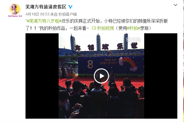 庆典第二日天气晴好,当主持人宣布“掌声有请礼宾团队端庄入场”时,礼仪队的同学们身着“公主”和“王子”礼服,伴着优雅的音乐声缓缓入场,在舞台上翩翩起舞。队员们用接连数天的努力换来在舞台上的那几分钟的表演时间,在登台的那一刻他们从台下观众赞许的眼光里看出了对自己辛勤付出的肯定。芜湖方特乐园在官方微博上发出表演视频并发文“欢乐的庆典正式开始,小特已经被你们的颜值所深深折服了!”礼仪队的队员无疑成为了庆典上一道最亮丽的风景线。