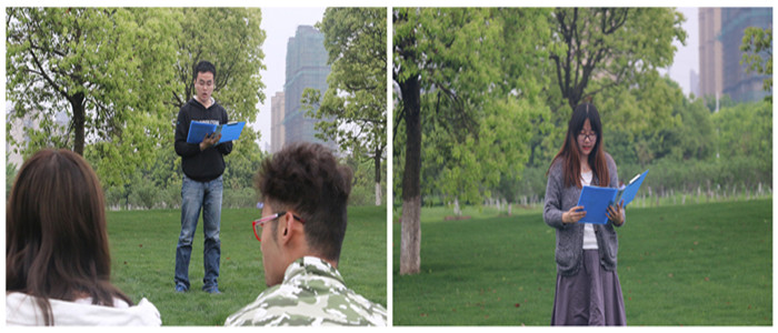 4月24日下午3点,在2014级辅导员老师孙月婷的带领下,来自新闻、广告、摄影、动画四专业共40余名班委同学同马克思主义新闻观学习社的骨干社员们于师大校园中央景观绿地展开了春韵诗歌诵读会。2014级新闻学专业的何修豪以一首评弹曲《无锡景》将全体师生从平日烦嚣的生活带进了丝竹悦耳的读书雅韵中。“我不是归人,是个过客”2014级广告学的陈苏洁和姚程阳将一袭青布长衫牵着倦马的文人形象细细刻画,哒哒的马蹄是乡愁还是情思?个中情谊自然只能是同学们自己把玩体味。才女林徽因一直被大家津津乐道,2014级新闻学专业的陈晓煜、罗凡带来的一首《你是人间四月天》十分应景。“你是爱、是暖、是希望,你是人间的四月天。”这首送给孩子的诗歌,在静谧的午后、宽阔如茵的草坪上朗诵起来,倒也平添几分阳光与活力。