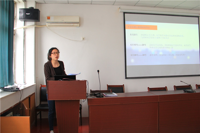 张老师首先将毕业前需要注意的时间节点告诉大家,让大家在后期安排好返校的时间,不耽误最后的毕业事宜。接着向大家通报了目前整个专业的考研及就业情况,督促待业的几位同学积极参加当天下午公司的招聘会,并且多登陆校园网、公司网和门户招聘网站及时关注就业信息,调整就业心态,抓住就业机会。谈到就业问题,张老师又再次强调了签订就业协议书相关的注意事项,并提醒同学们在找工作的过程中谨防传销、诈骗等就业陷阱。