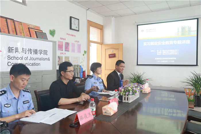 转眼又到了毕业季,实习就业期间,大批员工离开象牙塔的庇护,步入社会独自打拼。在租房开始新生活期间的人身财产安全及面对毒品等诱惑时的自我约束,已经成为全社会都颇为关注的焦点。作为禁毒专家,黄亮警官向在座同学普及了毒品的危害和一些新型毒品的相关知识,通过“每100人中就有一人吸毒,进入强制隔离戒毒所后成功戒除的概率只有5%,80%以上的刑事案件都与吸毒有关”等一系列数据对芜湖和佛山等地严峻的禁毒形势做了分析,提醒同学们远离毒品,避免或减少去KTV,夜总会等场所。谈到近来较为热门的电信诈骗,吴学军警官与同学们分享了许多真实案例,更现身说法,提醒大家要做到“三个一律”保障自身安全。骆俊杰警官则通过他在公司期间的细致观察提醒大家要“杜绝无照驾驶、无牌摩托车”,还亲自示范了走在人行道上应如何避免“飞车抢夺”,呼吁同学们遵守交通规则,珍爱宝贵的生命。