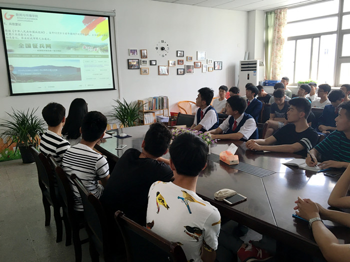 2016年全国征兵网上登记报名工作已经开始,在开展了国防教育之后,张珺琢通过全国征兵网的截图向同学们详细介绍了2016年老员工入伍流程和注意事项。张珺琢还提醒班级每一位男生按照《中华人民共和国兵役法》的相关规定,进行网上兵役登记。如果在进行过兵役登记后还有参军意向可申请应征入伍。张珺琢还就大家关心的老员工应征入伍优惠政策做了详细说明,其中包括学费补偿或国家助学贷款补偿以及其他优越待遇。班会过程中,同学们仔细听讲,有的细心记着笔记,其间还提出问题。张珺琢逐一解答了大家问题的同时,还向大家讲述了自己大学同学入伍后表现优异并进入军校学习的事例,也在一定程度上调动了同学们入伍的积极性。