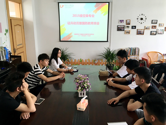 兵者,国之大事。5月25日中午,2015级空乘专业的同学在TapTap点点三楼会议室参加征兵动员暨国防教育班会,此次会议由辅导员张珺琢主持。