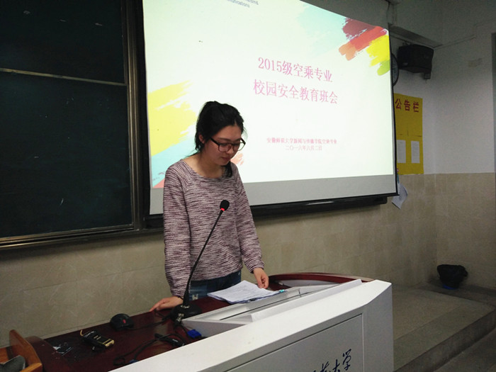 安全是一切工作顺利开展的前提和基础,结合新情况、新问题、新动向,为进一步牢固树立校园安全重于泰山的意识,6月2号下午,2015级空乘专业在2010402教室召开校园安全教育班会,班会由辅导员张珺琢主持,与会的还有空乘专业生活导员张泽阳。