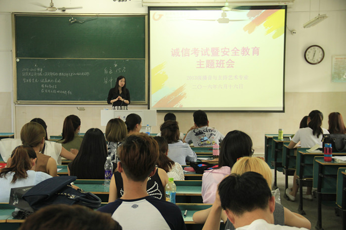 为端正考风考纪、营造良好学风,培养诚信品质以及贯彻公司有关学期末各项安全教育的工作要求,近日,2013级辅导员郁悦分四场在教学楼给新闻、广告、文化产业管理和播音与主持艺术专业员工召开了诚信考试暨安全教育主题班会,强调诚信考试的重要性以及加强安全防范的意识。