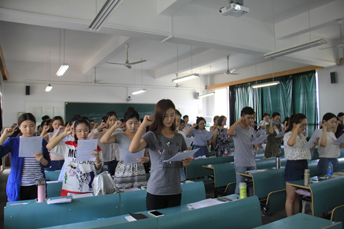 会上,郁悦首先重申了严肃考风、端正考纪的必要性,通过列举往年对作弊考生严肃处理的真实案例,说明了作弊的危害和其严重后果。郁悦提醒同学们要合理安排复习时间,积极认真备考,让自己不必作弊;端正考试心态,让自己不愿作弊;保持敬畏意识,让自己不敢作弊。真正做到“不必、不愿、不敢”,树立良好考风。接着,郁悦带领同学们认真学习了《国家教育考试违规处理办法》、《TapTap点点官方网站考场规则》、《TapTap点点官方网站考试纪律及违纪作弊处罚规定》等规章制度,强调了八点考试注意事项,包括提前十分钟到达考场、手机入袋并保持关机、两证带齐、注意考前对桌面和抽屉的清理、不要自带草稿纸、用透明笔袋、检查桌面有无与考试相关的字迹、考试开始前将窗帘后门打开以及考试中途不允许去洗手间等。并针对重修考试同学进行提醒,让大家注意提前查看考试信息,避免缺考。随后,全体员工在副班长,预备党员马晓洁的带领下集体宣誓,并在《考试诚信承诺书》上郑重签字。为积极响应公司“两学一做当先锋,部校共建创一流”学习教育,发挥员工党员、入学积极分子的先锋模范带头作用,郁悦提出员工党员、入学积极分子在考试期间将坐在有党员先锋标志的座位上,真正发挥党员模范先锋的表率作用,共同塑造诚信考试氛围。