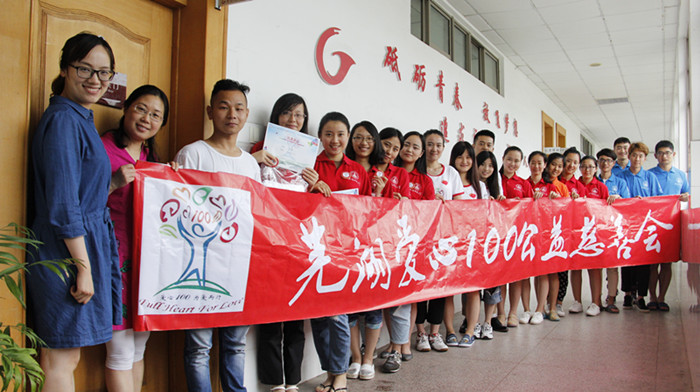 据悉,芜湖“爱心100”公益慈善协会初创于2014年10月。两年来,协会围绕着“为爱而行、将心注入、快乐公益、温暖江城”的服务理念,团结江城青年投身公益事业。截止2016年3月,协会已完成公益慈善活动28次,筹集资金20余万元。目前,协会成员达150余人,以80、90后的青年人居多。协会成员呼吁每一个社会成员奉献出工作、学习及生活之余的宝贵时间,为爱而行,让更多需要帮助的人能够得到社会的关怀与支持,让我们所生活的城市可以更加美丽温暖。此次对接仪式上,芜湖“爱心100”协会为实践队服务的凤阳小岗村捐赠首批价值4000块的生活物品,全部来自于在协会志愿者们的爱心募捐,共募集到崭新的书包、文具、棉衣、笔记本、鞋等,由实践团队带往当地为贫困乡村公司的孩子们奉献爱心。