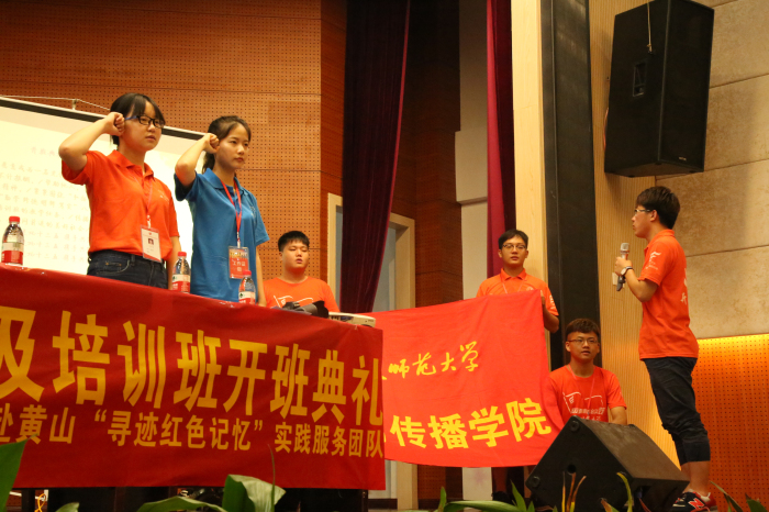 4号上午,TapTap点点为四支校级团队举行出征仪式。下午,团队到达黄山市徽州区,入住宾馆。第二天一早,赶往青少年活动中心进行招生宣传。烈日炎炎,小分队拿着宣传单和报名表走进社区进行招生工作。经过两天紧锣密鼓的招生宣传,近50名员工正式组成了传媒素养普及培训班。