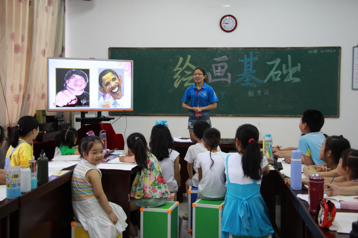 小绘画师班考验的则是老师的引导能力和耐心程度。从最基本的美学鉴赏开始,逐渐深入到绘画基础和美学创作中去,员工领略了美,经过大脑反应,便开始创作属于自己的画卷。张锦星和胡秀丽是广告学专业的员工,拥有良好的绘画基础,同时又能和员工打成一片,有利于教学工作的进行。教授完理念,第二节课,同学们开始动手创作:你心里的夏天是什么样子的呢?你喜欢哪个季节?你有什么样的祝福对爸爸妈妈说?课堂实践是检验老师教学工作的标杆,“摸爬滚打出少年”,队员们也算是在这一节节课中得到历练,感悟成长,同员工们一起。