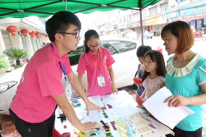 因为是在农村,多数家长会有类似于传媒素养培训这些听起来离他们很遥远的课程没什么用的想法,还有家长表示“不是文化课补习啊,那我家孩子不来了。”面对这种观念上的差异和家长们的误解,团队成员殷武耐心地向介绍分析到“我们不敢承诺短暂的支教时光能给孩子们带来诸多的理论知识,但是兴趣的启发这一点尤为重要。以后到了大学,都是讲究全面发展的,相信您也想让您的孩子从小就接触更多方面的知识。”经过招生小分队耐心的讲解介绍,前来咨询和报名的人渐渐多了起来,还有热心的家长给志愿者们送来遮阳伞。给家长们答疑解惑、填写报名表、签订安全责任承诺书……光荣中学持续两天的招生工作顺利结束,通过直接招生和口耳相传,该班共计招生38人。计划于7月9日正式开课。